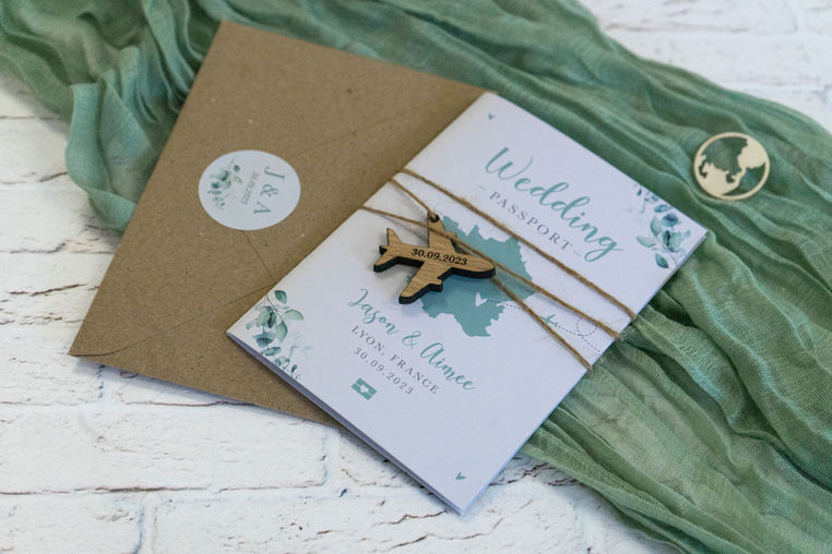 Yes! The passports can be fully customised to match your preferences. They are available in any colour and come personalised with your text and a front cover map that reflects the country where you’re getting married.